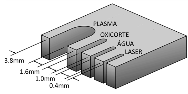 No processamento de chapas grossas no Brasil, tradicionalmente, utilizava-se o corte a laser em espessuras até 12mm, o plasma para espessuras entre 12mm e 38mm e o oxicorte em espessuras acima de 38mm.