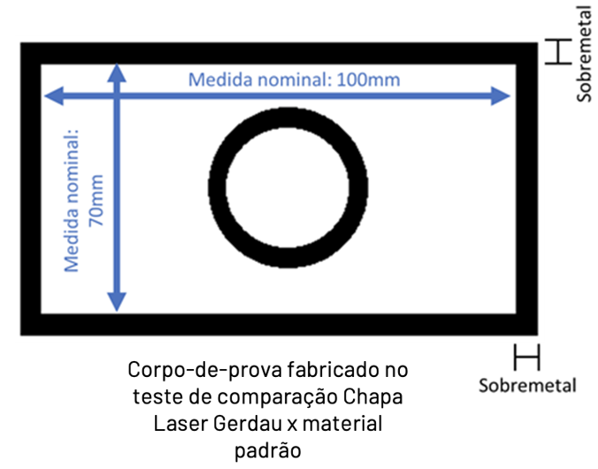 A diferença contabilizada tem potencial de ser maior, em favor da Chapa Laser Gerdau, se forem contabilizados os tempos de piercing e ausência de alarme de retroespalhamento durante corte do círculo interno do corpo-de-prova.