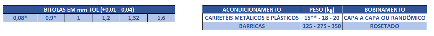 *** O limite máximo de cobre abrange o residual que há no aço e o revestimento.